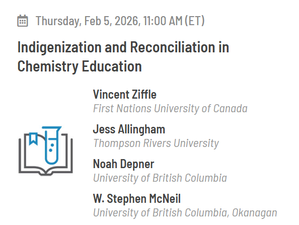 We are pleased to introduce a new series of virtual talks covering a wide range of topics in chemistry education, including laboratory education, online learning analytics and assessment, chemistry in Indigenous culture, BIPOC experiences in chemistry academia and much more. Learn More Here